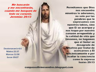 cosas para Dios, eso no es lo que El pide, Jesús anhela la amorosa compañía de sus amigos, la devoción y honra de sus hijos, la entrega y atención de sus discípulos que lo buscan a cada instante, que le consultamos todo, lo tenemos en cuenta a cada paso y lo adoramos intensamente por lo que